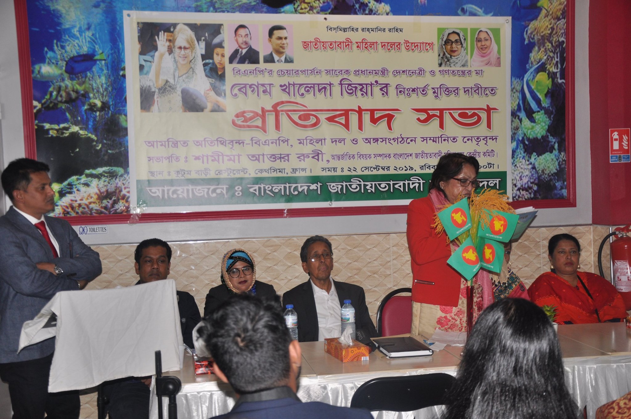 বাংলাদেশ জাতীয়তাবাদী মহিলা দল কেন্দ্রীয় কমিটির সাথে একাত্বতা ঘোষনা করে আপোষহীন দেশনেত্রী বেগম খালেদা জিয়ার নি:শর্ত মুক্তির দাবীতে ফ্রান্সে প্রতিবাদ সভার আয়োজন করেছেন বাংলাদেশ জাতীয়তাবাদী মহিলা দলের কেন্দ্রীয় কমিটির আন্তর্জাতিক বিষয়ক সম্পাদক শামীমা আক্তার রুবীর সভাপতিত্বে ও সার্বিক তত্বাবধানে মিল্টন সরকারের পরিচালনায় অনুষ্টানে প্রধান অথিতি হিসাবে উপস্হিত ছিলেন – ফ্রান্স বি এন পির সাবেক সভাপতি সিরাজুল ইসলাম মিয়া, প্রধান বক্তা যুক্ত রাজ্য থেকে আগত যুক্ত রাজ্য জাতীয়তাদী মহিলা দলের কনভেনার ফেরদৌস রহমান , বিশেষ অথিতি ফ্রান্স বি এন পির সাবেক বিপ্লবী সভাপতি এহসানুল হক বুলু ,সাবেক সহ সাধারণ সম্পাদক আব্দুল কাইয়ুম সরকার , ডঃ কামরুল হাছান|।
